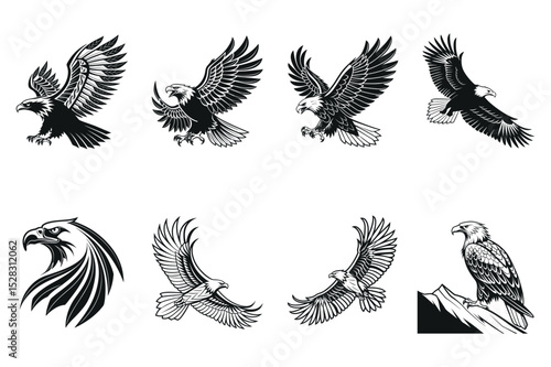Obraz premium Powerful eagle illustrations, perfect for prints or tattoos.