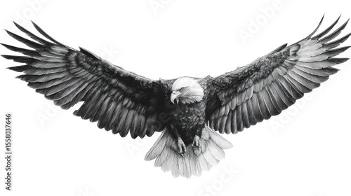 Obraz premium Powerful eagle in flight, monochrome illustration