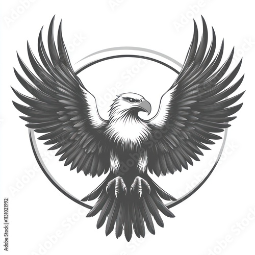 Fototapeta premium Powerful eagle in flight, with outstretched wings, centered in a circular design.