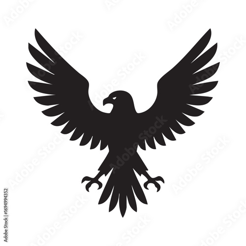 Obraz premium Powerful Eagle Silhouette with Outstretched Wings Representing Strength Freedom and Determination for Logos and Designs