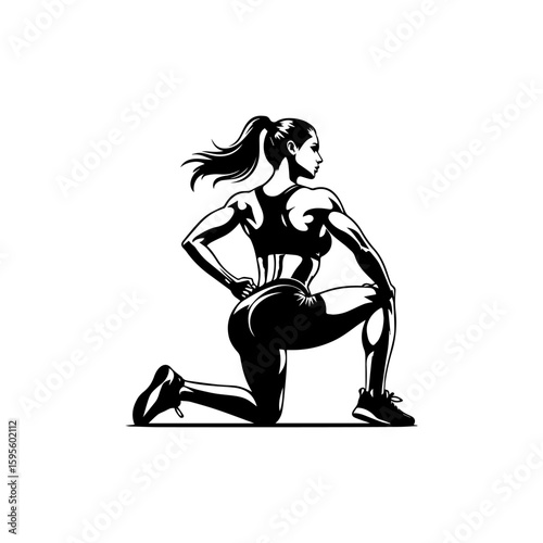 Obraz premium Powerful Female Athlete in a Dynamic Kneeling Pose.