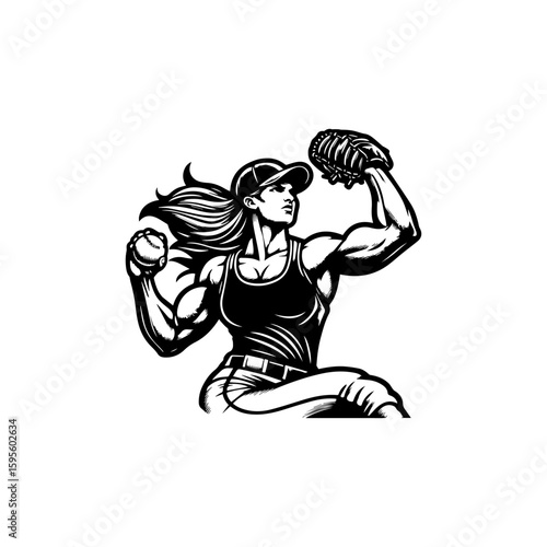 © animardiani, Fototapeta premium Powerful Female Softball Pitcher in Action Ready to Throw the Ball.