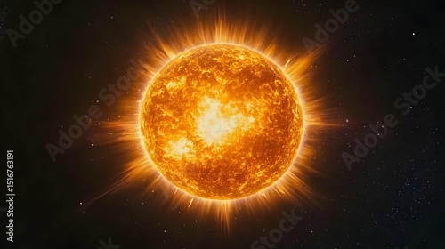 Naklejka premium Powerful Glowing Sun In Outer Space