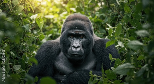 Obraz premium Powerful Gorilla Portrait in Natural Habitat Surrounded by Lush Greenery