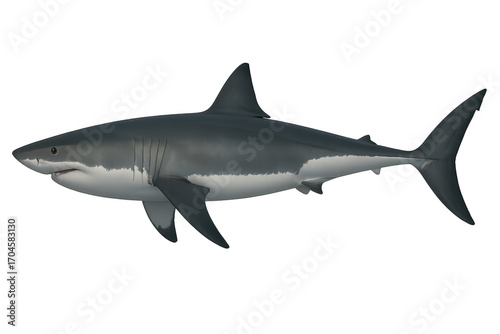 © whitestorm, Naklejka premium Powerful Great White Shark isolated on transparent background, fierce marine predator