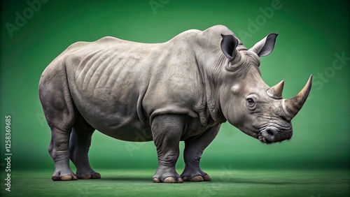 © Danicha, Obraz premium Powerful Grey Rhinoceros, Endangered Species, Minimalist Green Background