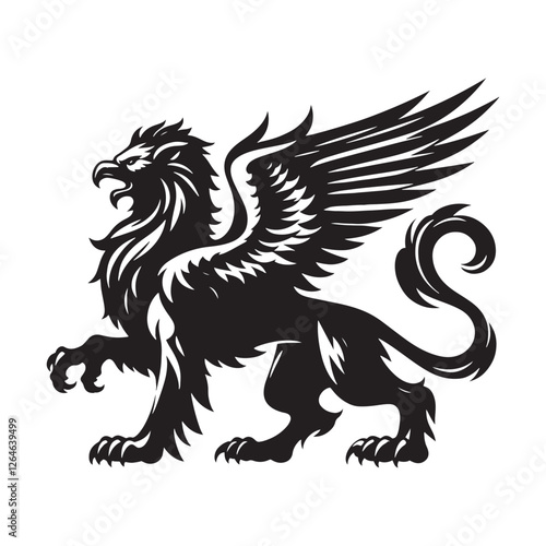 Fototapeta premium Powerful Griffin silhouette representing mythical strength and royalty - Griffin illustration - Griffin vector - mythical creature silhouette