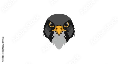 Naklejka premium Powerful Hawk Head Illustration Fierce Bird of Prey Graphic Design Intense Gaze Wildlife Art