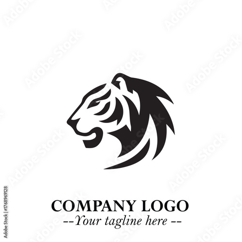 © Lalu, Naklejka premium Powerful Head of Tiger Logo Symbol in Black on White Background with Bold Modern Minimalist Design