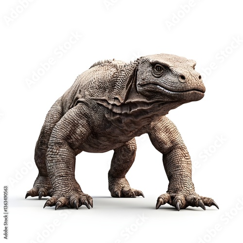 Obraz premium Powerful Komodo Dragon Reptile Standing on White Background Wildlife Animal...