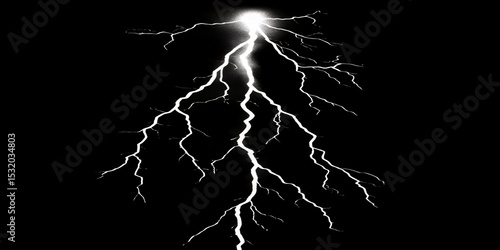 Obraz premium Powerful Lightning Bolt Striking Down A Dark Night Sky Dramatic White...
