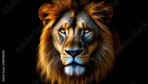 Naklejka premium Powerful Lion Portrait Against a Black Background