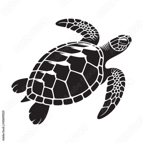 © Vectorhub, Fototapeta premium Powerful Loggerhead Sea Turtle silhouette, carrying strength and wisdom – Loggerhead Sea Turtle illustration – Minimalist Loggerhead Sea Turtle vector – Reptile silhouette