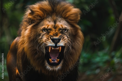 © Minerva Studio, Naklejka premium Powerful male lion roaring showing its teeth