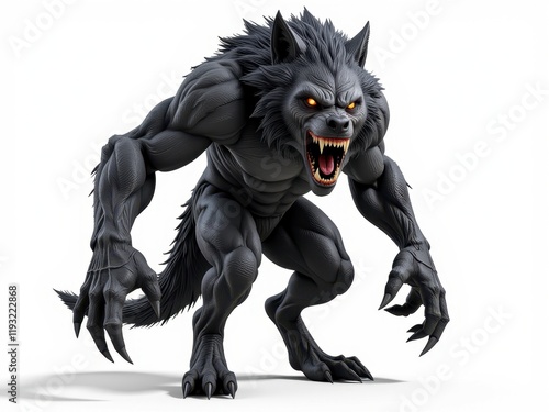 Fototapeta premium Powerful Muscular Werewolf Monster Angry Beast Fantasy Creature 3D Render