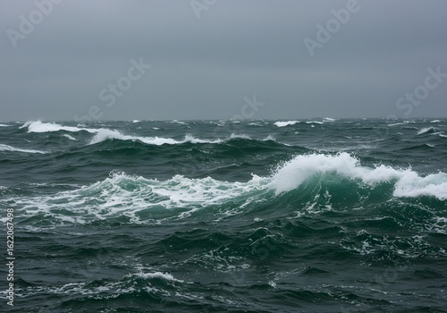 Fototapeta premium Powerful ocean waves crash dramatically against the rugged coastal rocks,...