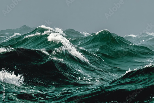 © RISHAD, Obraz premium Powerful ocean waves crashing with intense motion under cloudy sky