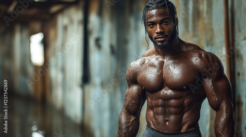 © novitasary, Fototapeta premium Powerful Physique: A Muscular Man in an Urban Setting