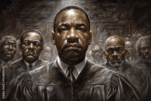 Naklejka premium Powerful Portrait African American Leader Supporters in Court