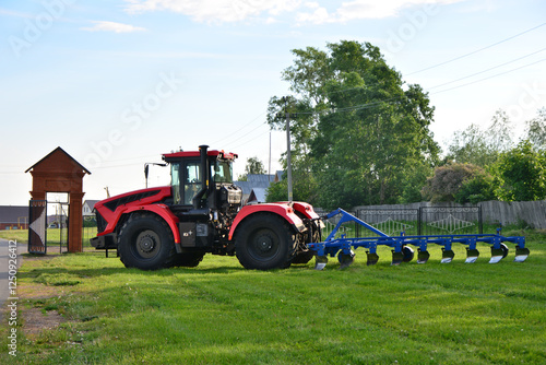 © Irina, Naklejka premium Powerful Red Tractor in a Field