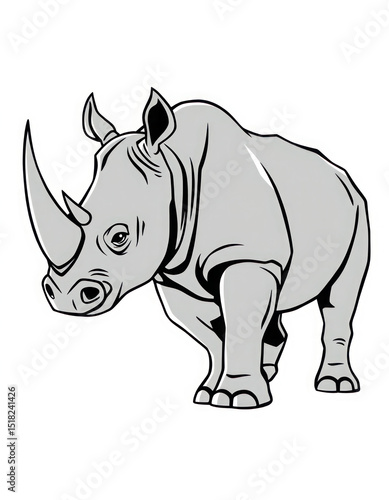 Fototapeta premium Powerful Rhino Illustration, Wildlife Art, Grey Rhinoceros Drawing