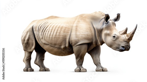 © munirahsamsudin, Fototapeta premium Powerful Rhinoceros Standing Against Plain Background