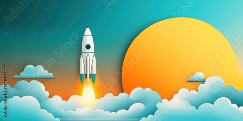 © Elena, Obraz premium Powerful Rocket Launching Into the Sky Banner