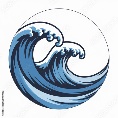 © MC Portfolio, Naklejka premium powerful sea waves logo crashing inside a round border