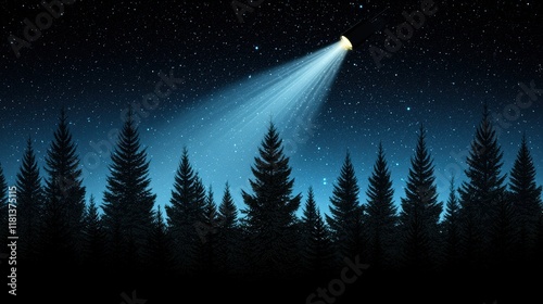 Fototapeta premium Powerful searchlights beaming upwards into a night sky, searching for something in the darkness.