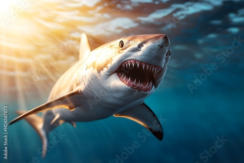 © WILASINEE, Naklejka premium Powerful shark emerging from the ocean depths