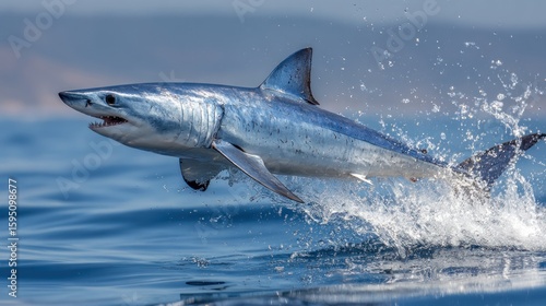Fototapeta premium Powerful shark leaps ocean