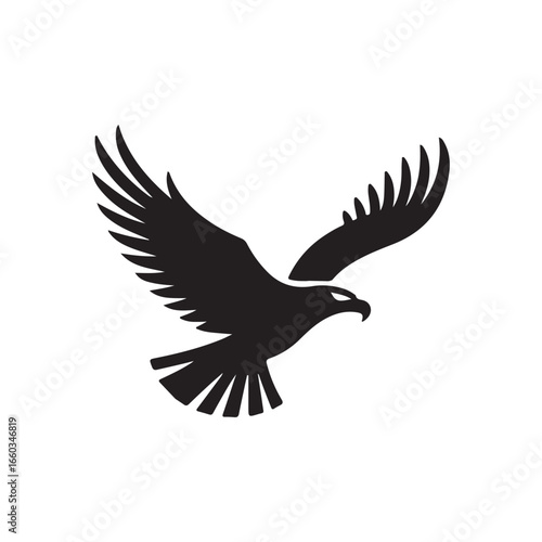 Fototapeta premium Powerful Silhouette of a Soaring Eagle.A bold, black silhouette of an eagle in flight against a pure white background.