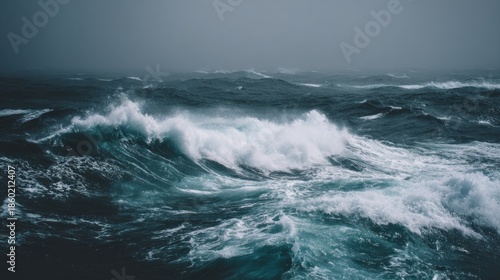 Fototapeta premium Powerful Stormy Ocean Waves Under Dark Skies with Seasonal Turbulence