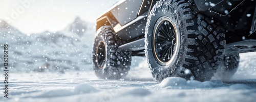 © Maftuh, Naklejka premium Powerful SUV conquering snowy mountain pass. Adventure and freedom in winter wonderland.