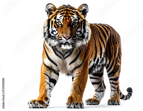© Nirmala, Fototapeta premium Powerful tiger, full-body shot, alert gaze, against white background