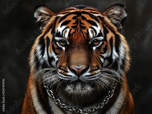 © Riz, Fototapeta premium Powerful Tiger Portrait with Chain