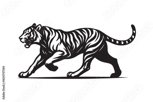 © Silhouette King, Obraz premium Powerful Tiger Roaring in Action
