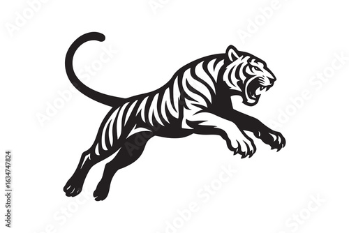 © Silhouette King, Obraz premium Powerful Tiger Roaring in Action