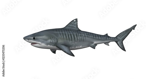 Fototapeta premium Powerful Tiger Shark Swimming Ocean Predator Marine Wildlife Aquatic Animal Illustration
