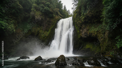Obraz premium Powerful Waterfall in the Jungle with Long Exposure Effect (Silky Water) and...