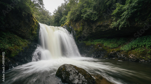 © Cristiano, Fototapeta premium Powerful Waterfall in the Jungle with Long Exposure Effect (Silky Water) and Green Moss