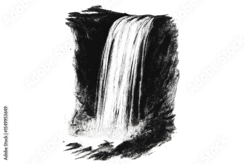 © Michael, Obraz premium Powerful waterfall plunging over dark rocky cliff, generating dramatic natural energy, isolated on transparent backdrop for seamless design composition