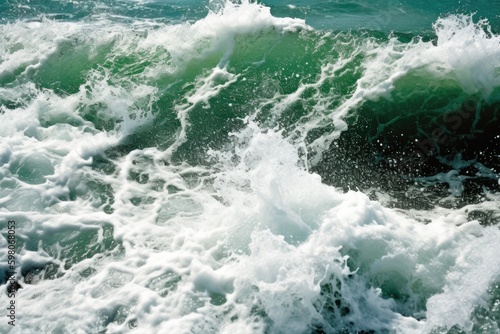 Fototapeta premium powerful wave in the ocean, captured up close. Generative AI Generative AI