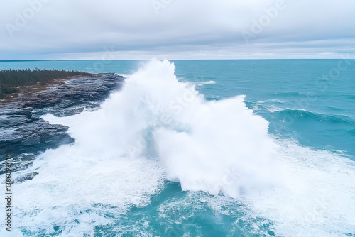 © RIANNUZUL, Fototapeta premium Powerful waves crashing against a rocky coastline