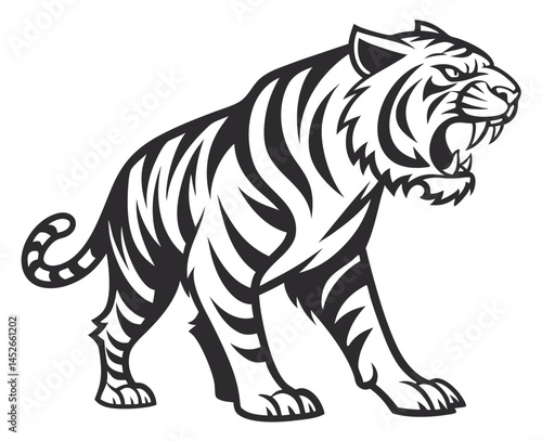 Naklejka premium Powerful White Tiger with Open Mouth Art