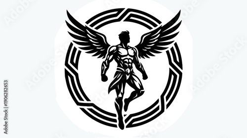 © alisya, Obraz premium Powerful winged figure soaring within a circular emblem design.