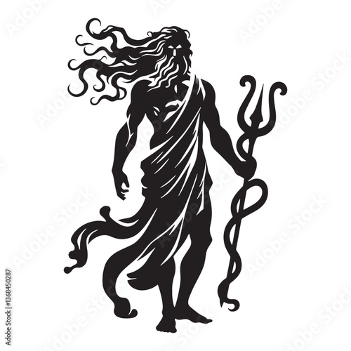 © Vectorhub, Fototapeta premium Powerful Zeus silhouette, master of lightning and thunder - Zeus illustration - Zeus vector - Greek god silhouette