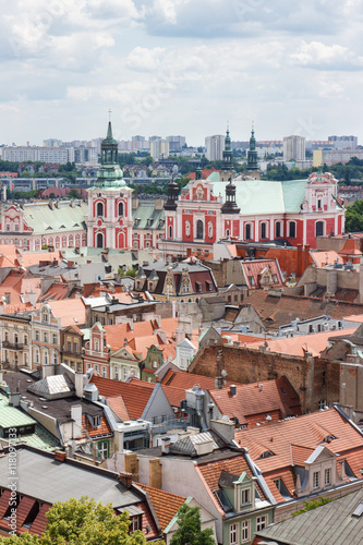 Obraz premium Poznań - 28 czerwca 2016: Widok na budynki i kolegiata w polskim mieście Poznań