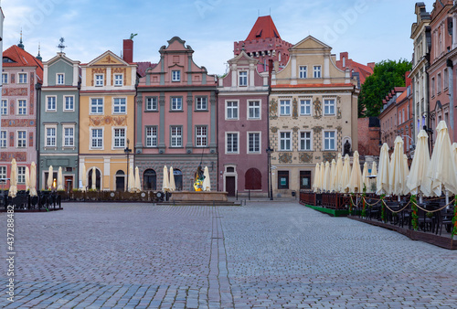 © pillerss, Obraz premium Poznan. Old Town Square with famous medieval houses at sunrise.