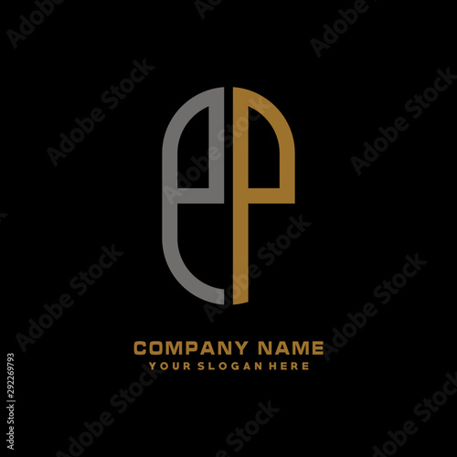 Obraz premium PP minimalist letters, with gray and gold, white, black background logos